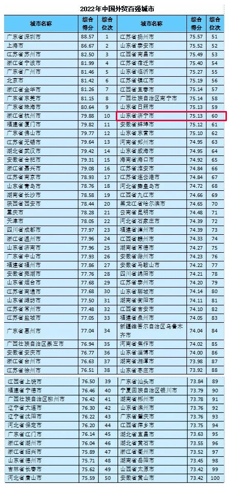 济宁入选!中国外贸百强城市榜单火热出炉