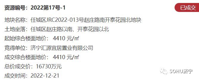 地块一:任城区JRC2022-013号赵庄路南开泰花园北地块【济宁汇源宜居置业有限公司竞得】