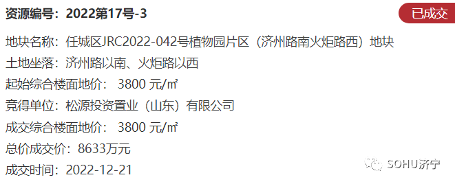 地块三:任城区JRC2022-042号植物园片区(济州路南火炬路西)地块【松源投资置业(山东)有限公司竞得】