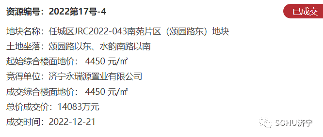 地块四:任城区JRC2022-043南苑片区(颂园路东)地块【济宁永瑞源置业有限公司竞得】