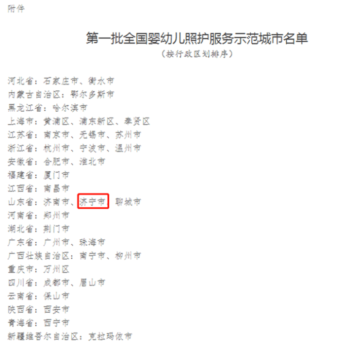 济宁市入选!第一批全国婴幼儿照护服务示范城市名单发布