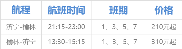 3月30日起,济宁大安机场加密济宁-榆林往返航班。