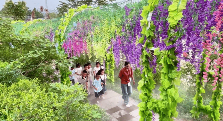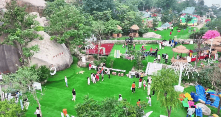 峄恋园以梁祝文化为轴线,占地面积约30亩,建设有脉动泉、紫藤花廊、圆梦峄恋园剧场等23个游乐项目,是集生态旅游、水上乐园、萌宠乐园、亲子休闲等主题场景为一体的精品游园。
