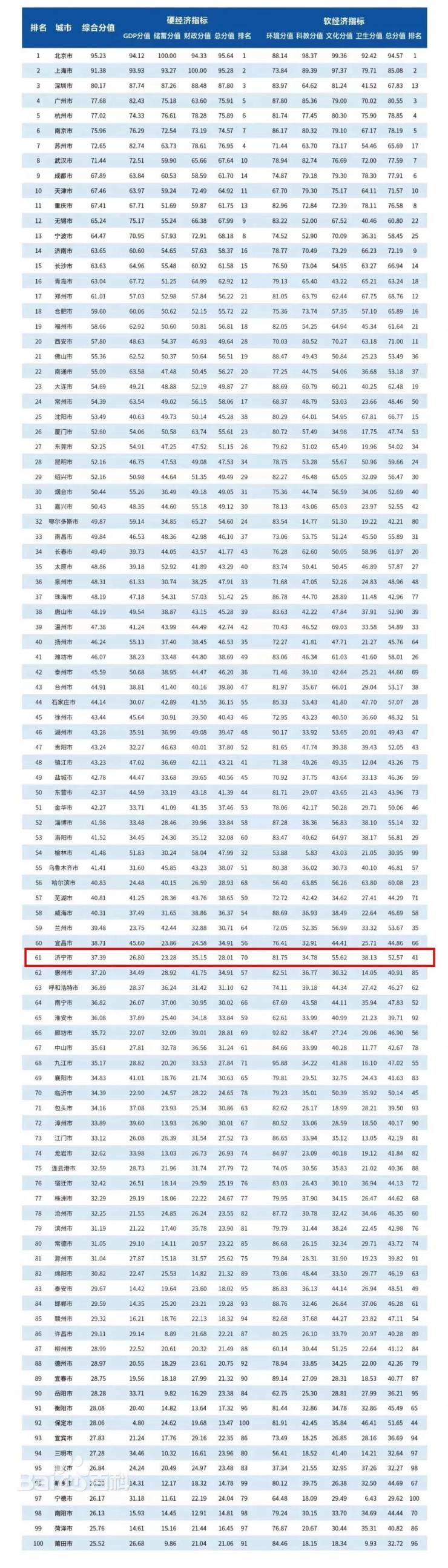 济宁市前移至61位!2022年中国百强城市排行火热出炉