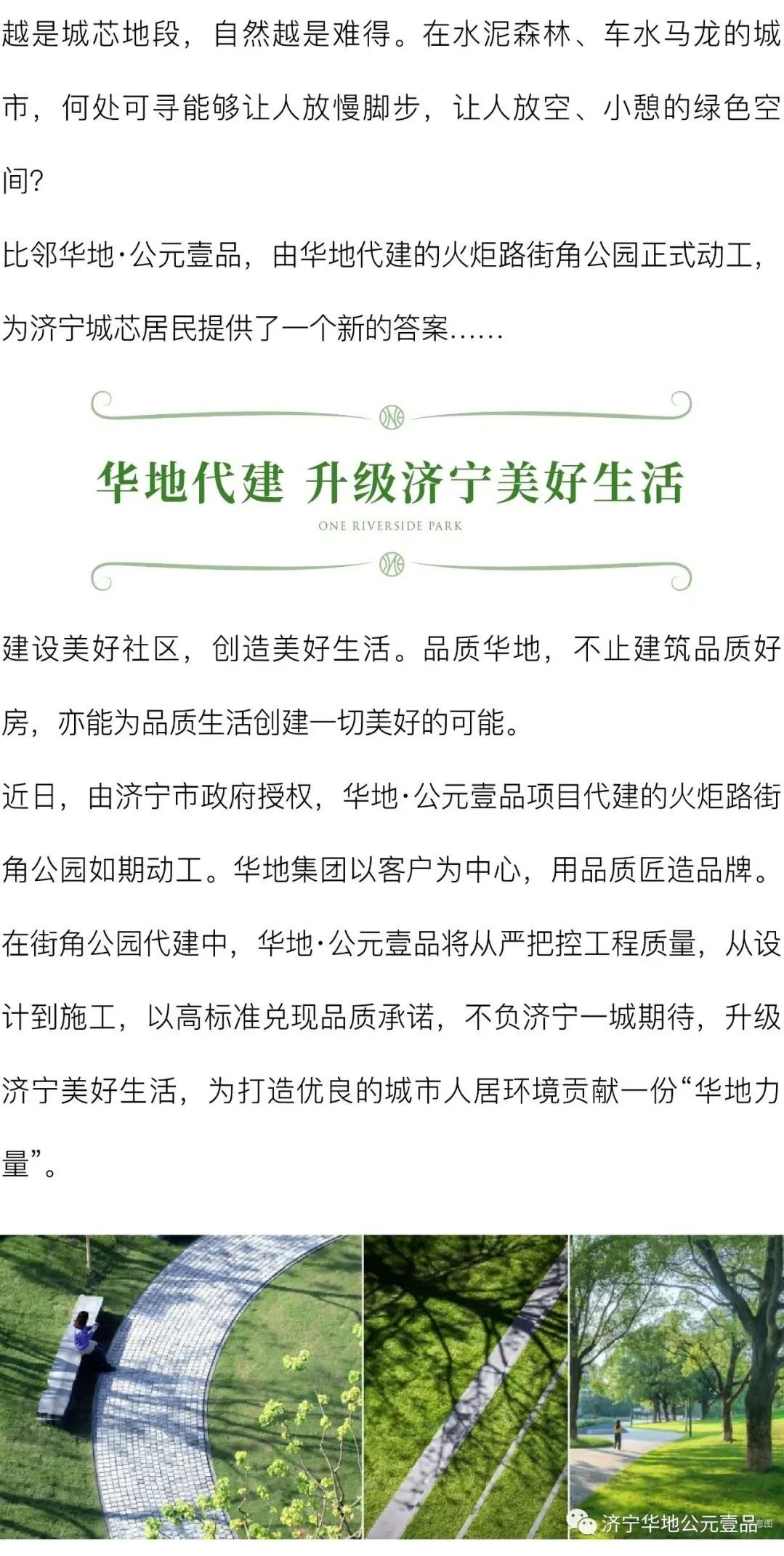 每一次的美好升级,都是匠心精神的呈现。以火炬路街角公园动工为全新起点,未来,济宁华地公元壹品将继续秉承华地的品质初心,以客户需求为导向,从产品到服务,从社区到配套,不断迭代升级,锻造超越济宁业主期待的美好生活。