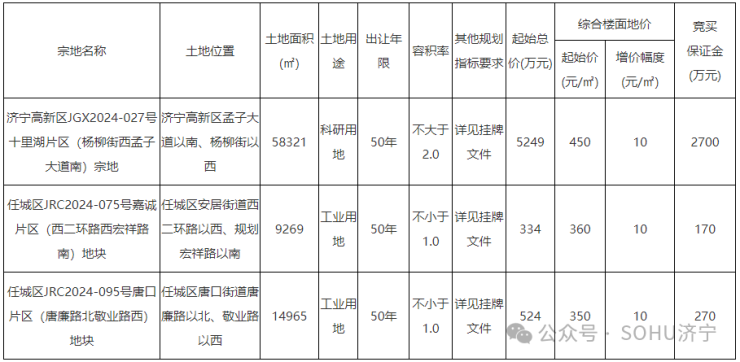 1. 济宁高新区JGX2024-027号十里湖片区(杨柳街西孟子大道南)宗地:2025年2月11日9时00分至2025年2月21日9时00分;