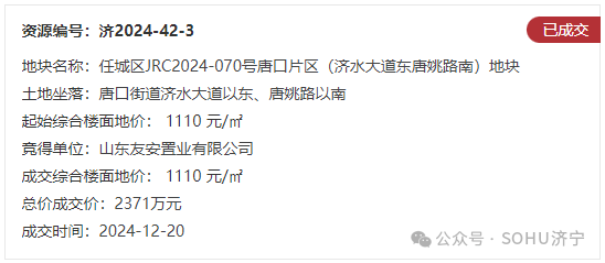 地块三:任城区JRC2024-070号唐口片区(济水大道东唐姚路南)地块【山东友安置业有限公司竞得】