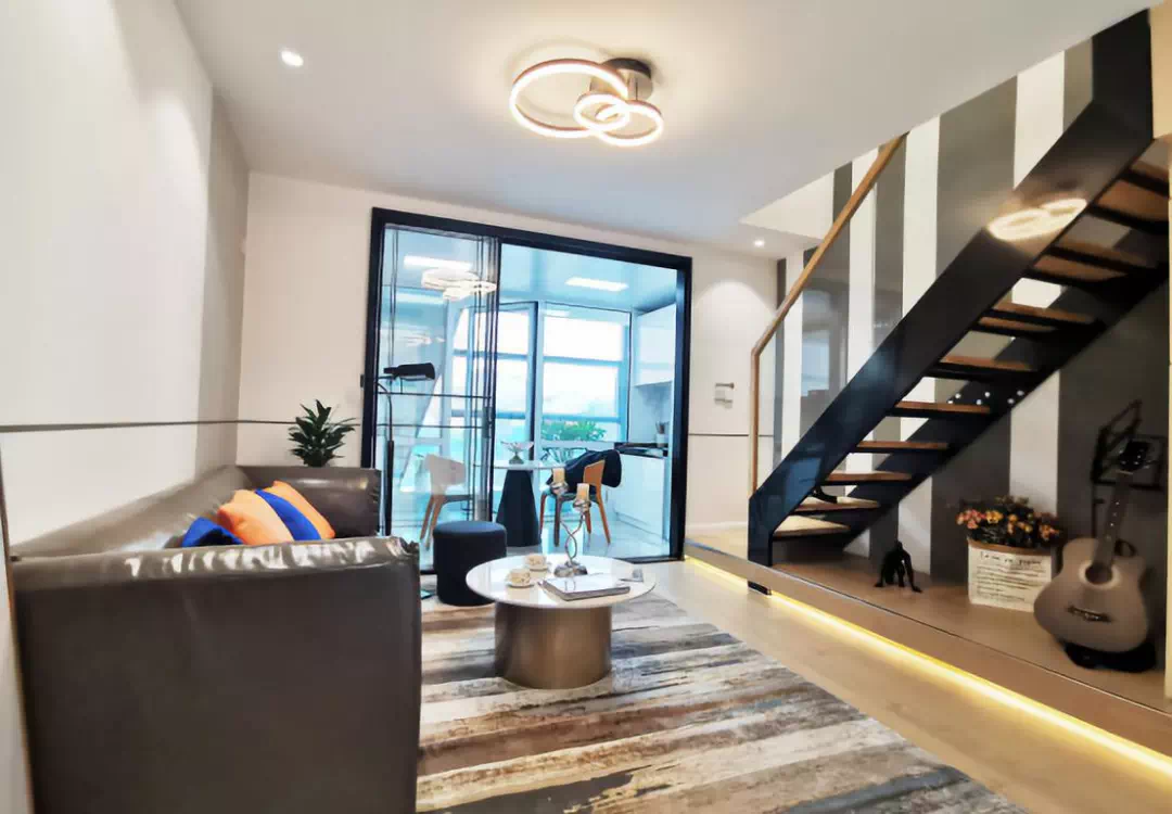 百变LOFT:5.08米超高层高,买一层得两层,44-50㎡两室三厅两卫,使用面积约70㎡,得房率高达156%,并有燃气接入、地暖入户,居住功能堪比住宅。