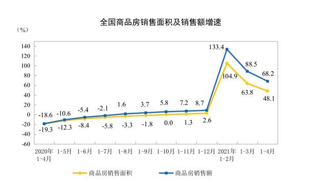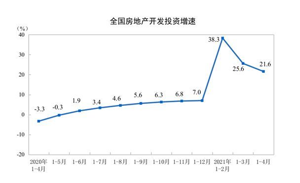 5月17日,国家统计局发布2021年1-4月份全国房地产开发投资和销售情况。