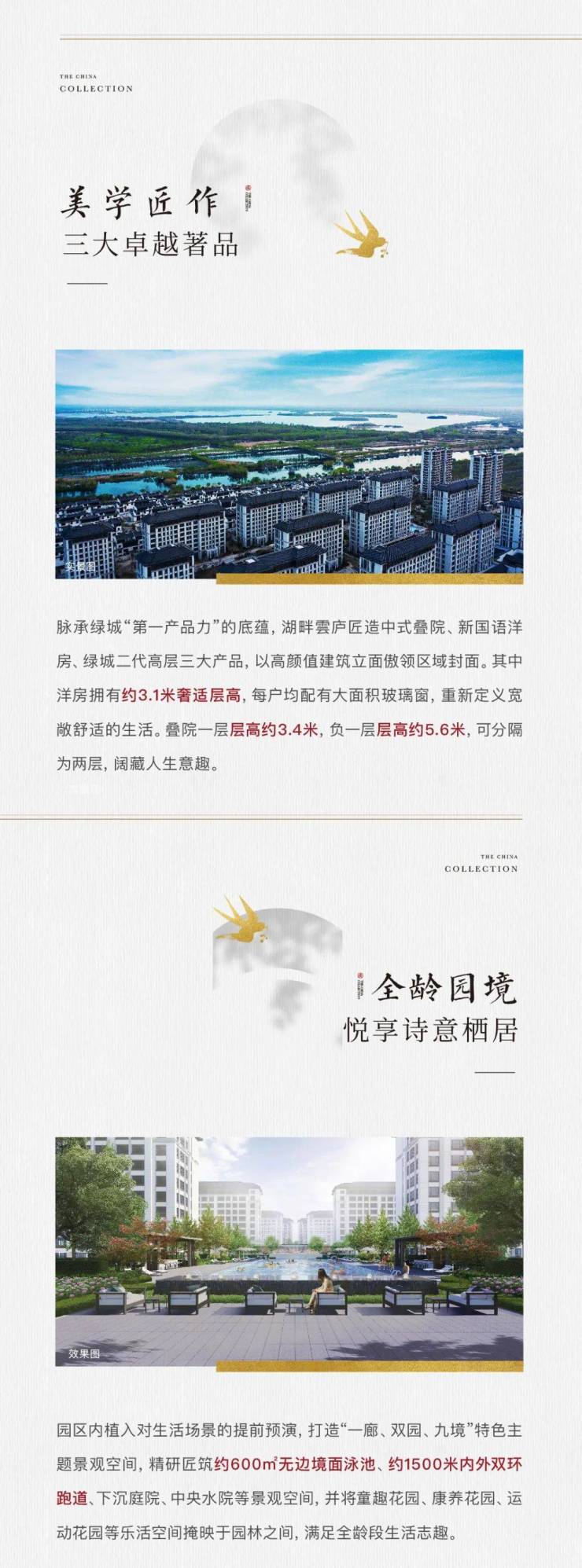 脉承绿城“排名前列产品力”的底蕴,城投绿城·湖畔雲庐匠造中式叠院、新国语洋房、绿城二代高层三大产品,以高颜值建筑立面傲领区域封面。其中洋房拥有约3.1米奢适层高,每户均配有大面积玻璃窗,重新定义宽敞舒适的生活。叠院一层层高约3.4米,负一层层高约5.6米