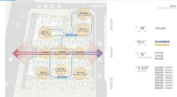 社区内,更以一轴、两环、三庭、九园的空间序列,层层递进,逐次展开,丰富的空间变换展现了尊贵的礼仪序列,重新诠释现代森林有氧社区,每一个家庭都可以在此共度美好时光。