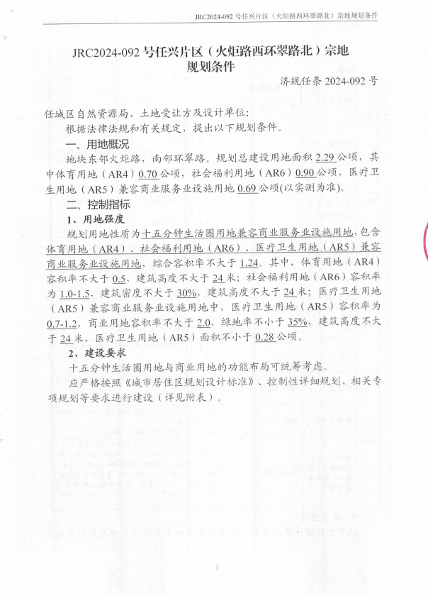 任城区JRC2024-092号任兴片区(火炬路西环翠路北)地块【济宁运河信诚建设发展有限公司竞得】