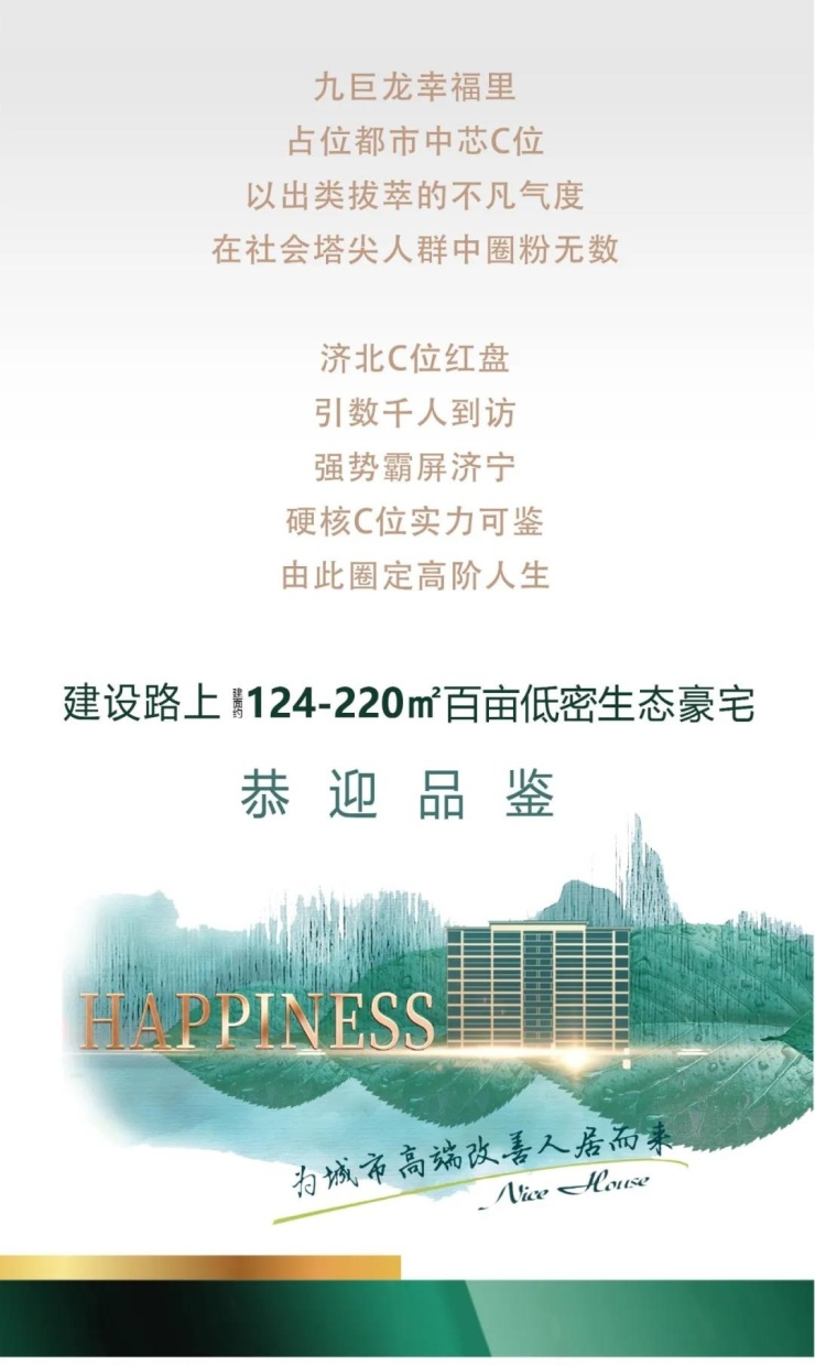 九巨龙幸福里C位是城市的心脏,更是一座城市的价值灯塔。九巨龙幸福里C位中的C位,济宁主城任城区政府旁、建设路上。厚载城市繁华与诗意生活,圈定全新都会生活主场。