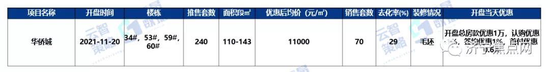 本周市场华侨城项目加推小高层,共计240套,去化率29%。