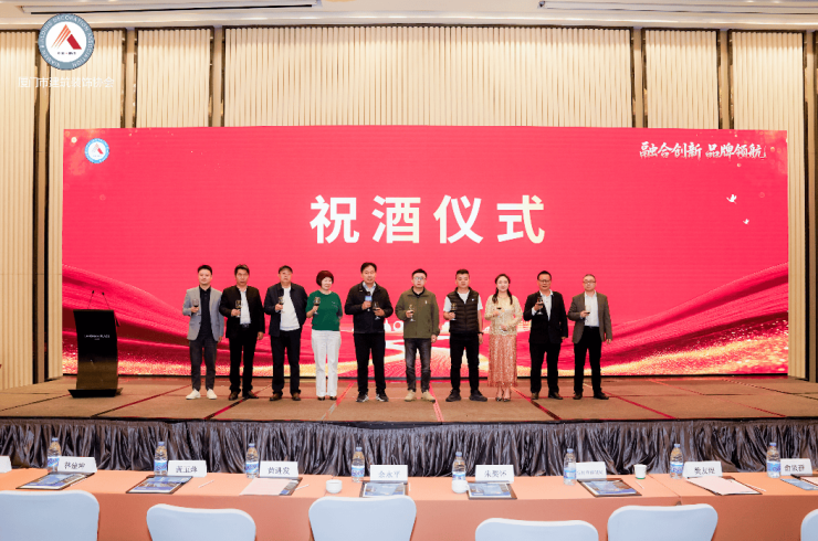 品牌分享会后,进入氛围热烈的2025年度会员联谊晚宴。厦门市建筑装饰协会会长朱奖怀带领协会领导班子成员及本次活动赞助企业代表登台祝酒,协会2025年度会员联谊会正式开始。