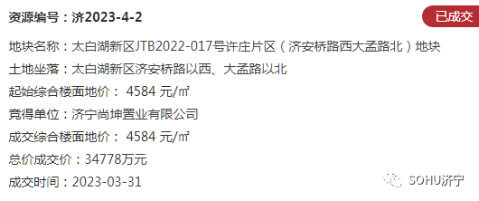 地块二:太白湖新区JTB2022-017号许庄片区(济安桥路西大孟路北)地块【济宁尚坤置业有限公司竞得】