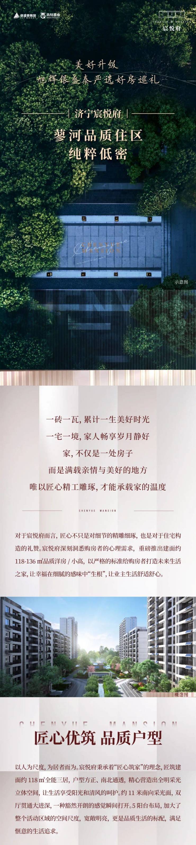 建筑的形态、内在、空间,乃至每个工艺细节。都关乎切身的生活感受。宸悦府在细节处精益求精,为每一位业主家人的未来生活提供更有温度的高品质人居。建面约 118-136㎡品质洋房/小高,敬献懂得生活,更懂有生活追求的家人们。