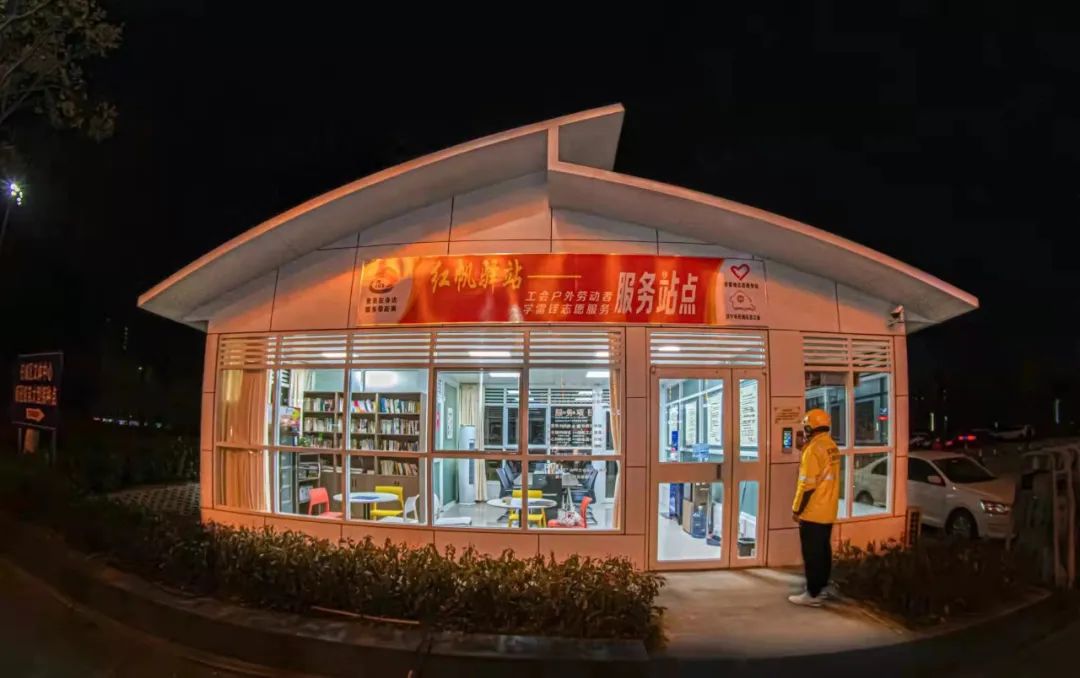 同时,任城区总工会在全区先后设立了43处户外劳动者驿站,面向广大劳动者提供饮水休息、避雨热饭、困难帮扶等暖心服务。区总工会还积极探索如何为快递员、外卖配送员、网约车司机等新就业形态劳动者提供晚间服务。“从2021年5月份开始,区总工会抓住建设智慧工人文化宫系统的时机,依托‘齐鲁工惠’平台数据支持,综合运用云储存、实时监控、人脸识别、二维码验证等信息技术手段,实现了工人文化宫驿站24小时开放服务。日间早8点30分至下午5点30分,站点由志愿者值守服务;晚间17点30分至第二日早8点30分,由门禁系统和智能化设备管理。晚间劳作的户外劳动者在门禁设备上扫描“齐鲁工惠”App会员二维码,门禁设备自动进行数据库信息比对,识别成功后智能门自动打开提供自助服务。”任城区总工会相关负责人告诉记者,为了满足新就业形态劳动者特殊服务需要,驿站除了提供了饮水充电充气等基本设备外,还专门配备了微波炉用于热饭,配备冷鲜柜用于食品饮料保鲜,配备了空调用于取暖纳凉,设立职工书屋用于阅读学习,还专门为女职工开辟私密空间,设妈妈小屋用于休息和哺(集)乳。