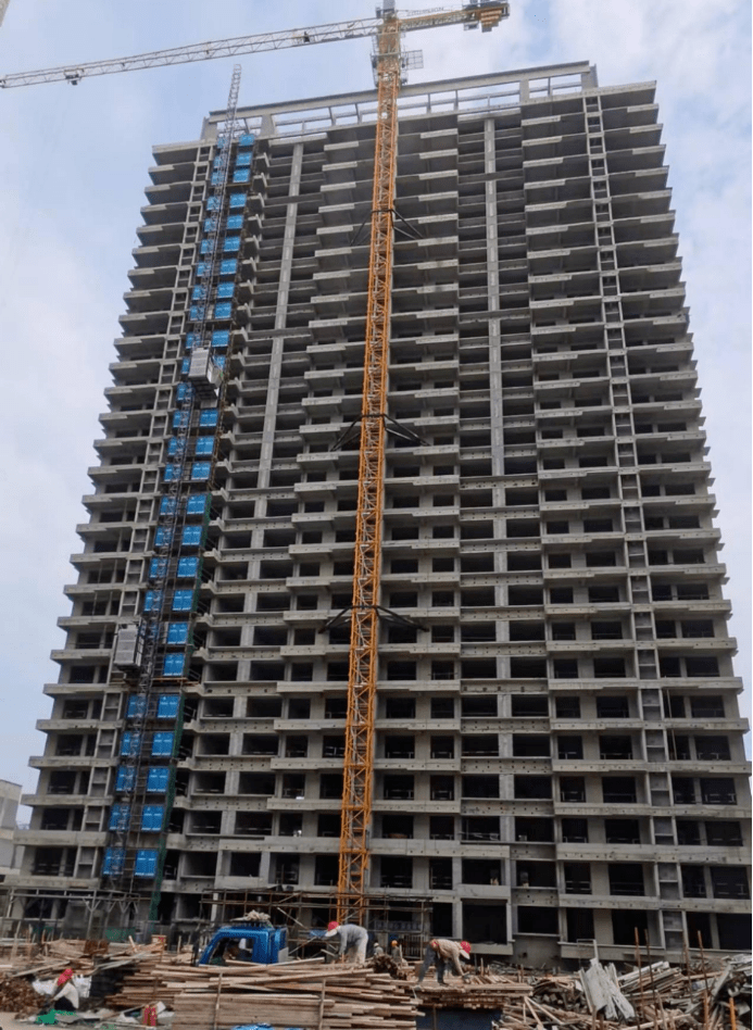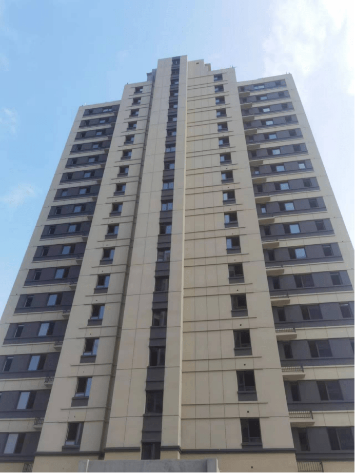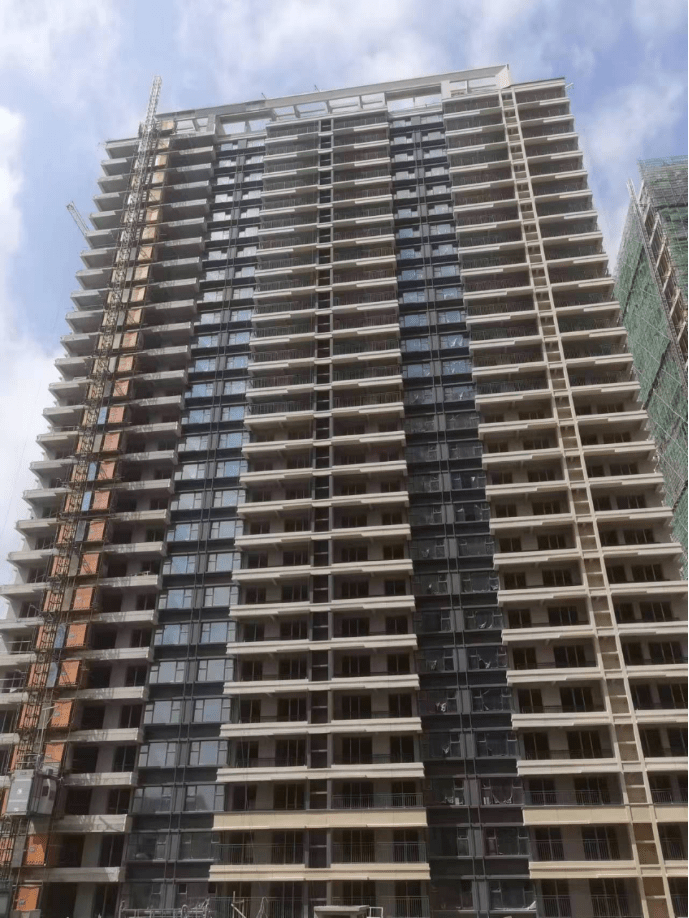 6#楼屋面、内墙抹灰、室内顶棚腻子、外墙抹灰完成;外窗安装完成85%;外墙保温完成95%;外墙真石漆完成90%;阳台、连廊栏杆安装完成。