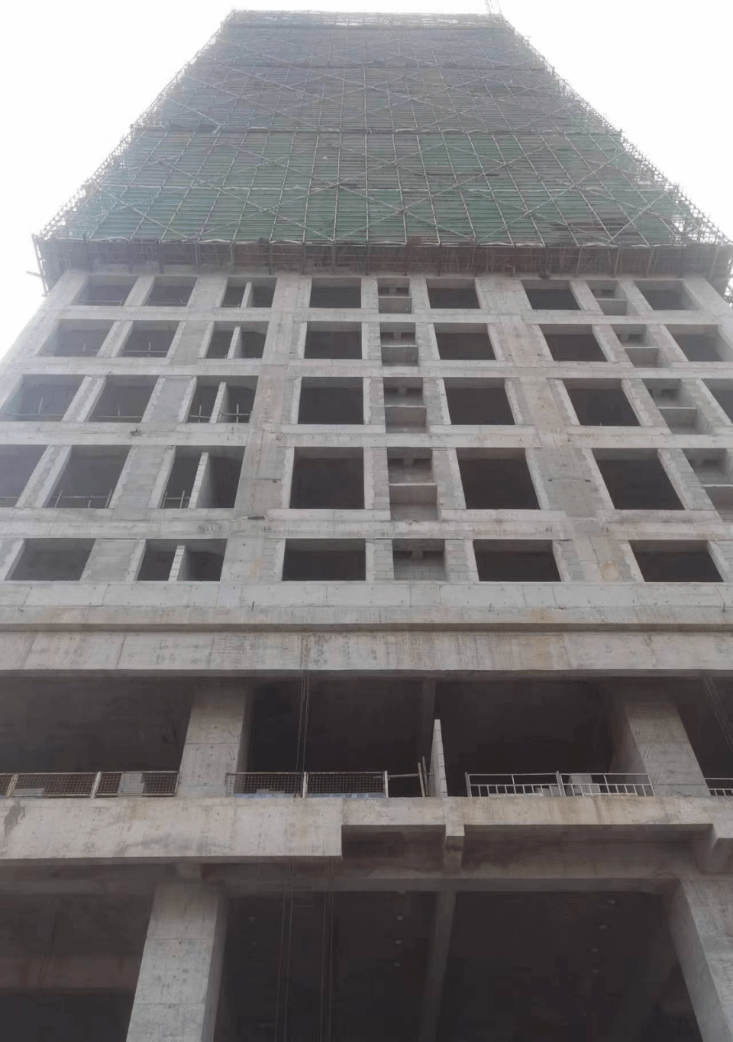 9#楼砌筑完成,窗框完成,屋面防水完成,2-14层内墙抹灰完成。