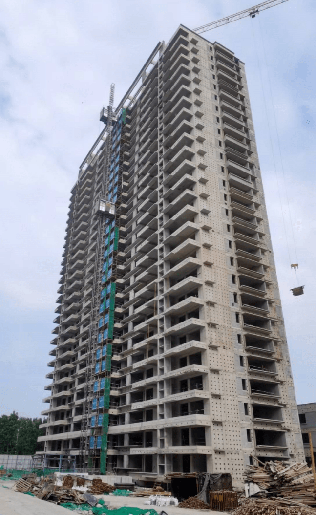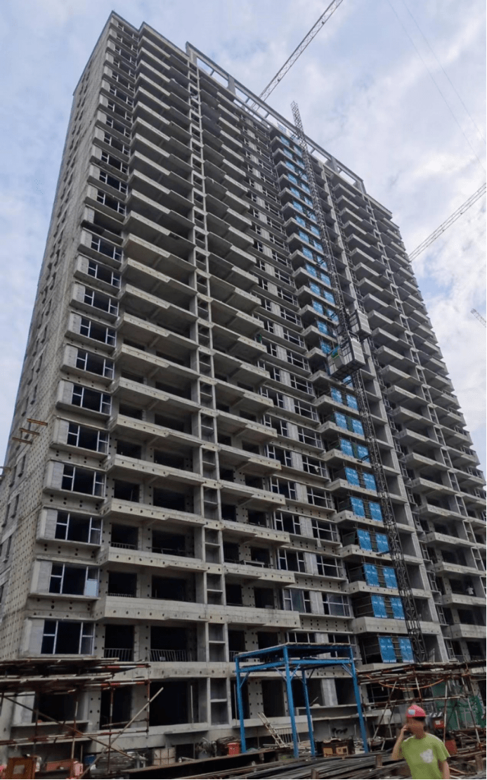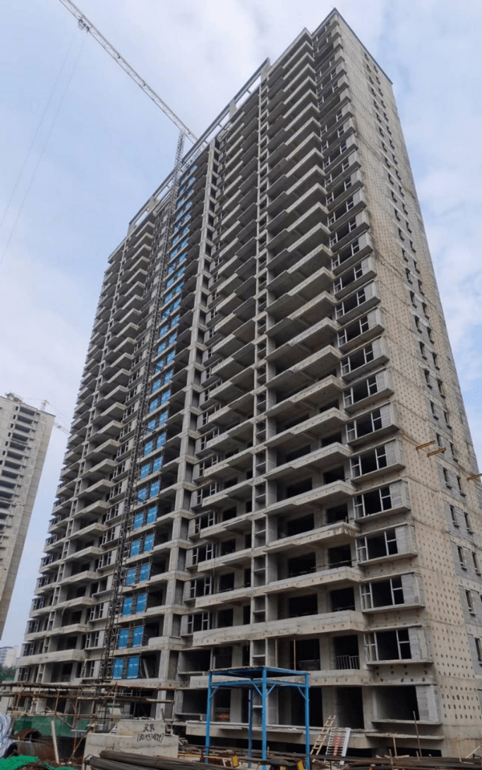 1#楼屋面、内墙抹灰、室内顶棚腻子、外墙抹灰完成;外窗完成85%;外墙保温完成95%;外墙真石漆完成90%;阳台、连廊栏杆安装完成。