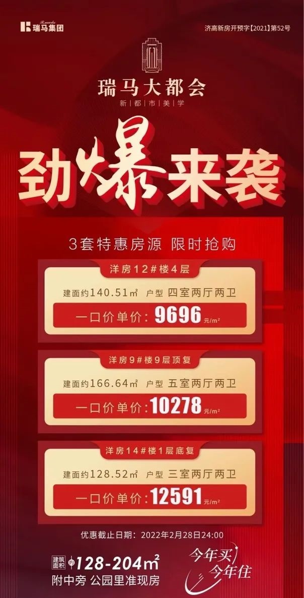 瑞马大都会,新都市美学。3套特惠房源,限时抢购。建面约128-204㎡附中旁,公园里准现房。