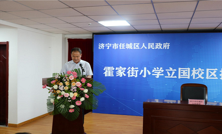 济宁市立国集团董事长王成国在致辞中表示,立国集团援建霍家街小学立国校区,立国集团将不负众望,全心全意把学校建设成为质量高、配套全、环境优的一流校区,为片区居民带来优质教育资源,让政府放心,让群众受益。