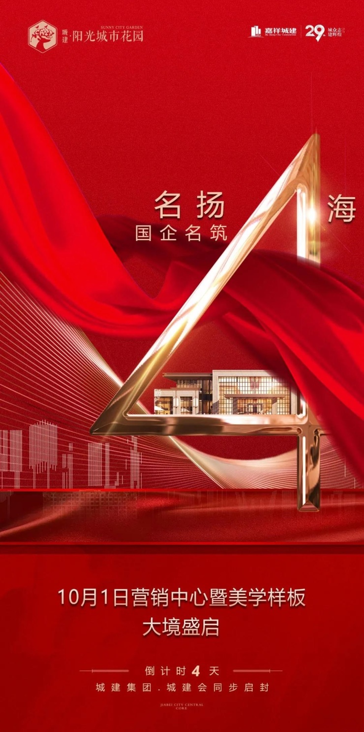 国企名筑,名扬四海。10月1日阳光城市花园营销中心暨美学样板大境盛启,倒计时4天。
