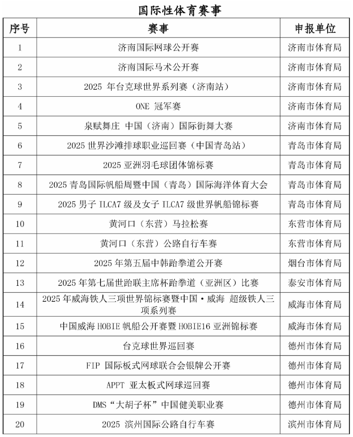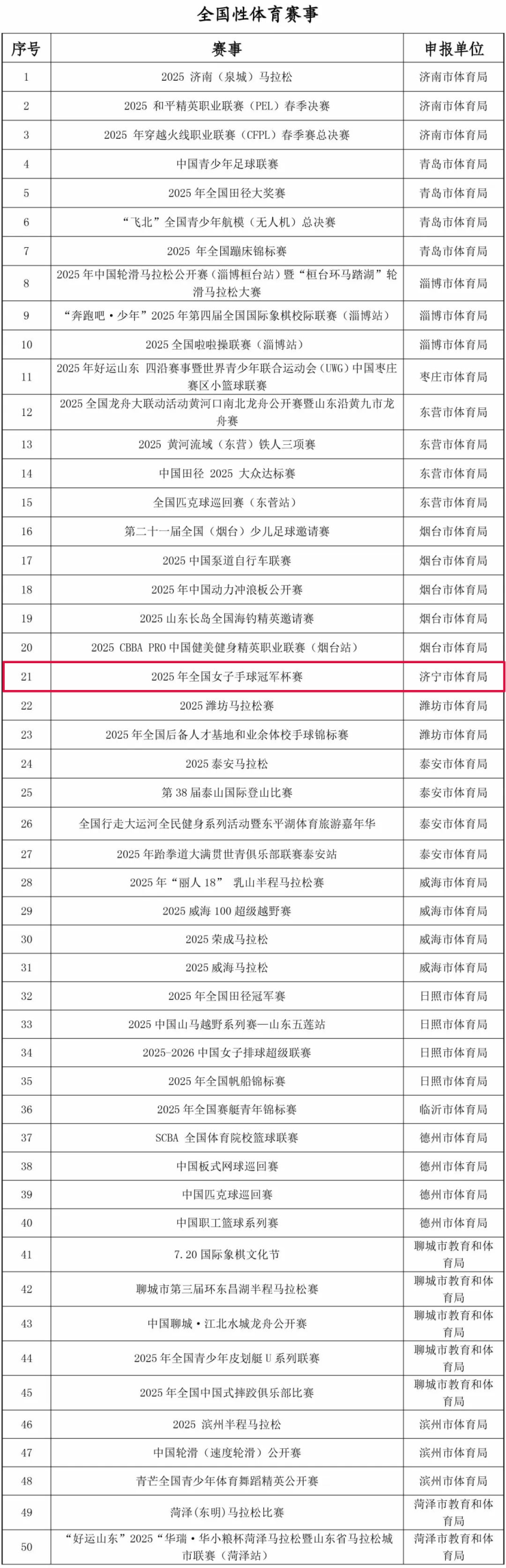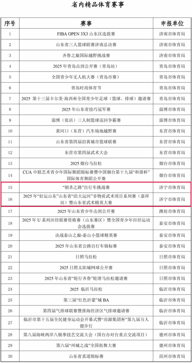济宁3项!2025年度山东省重大体育赛事项目库入库名单公示