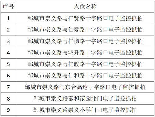 出行提示:8月1日起,邹城启用9处电子违法抓拍系统
