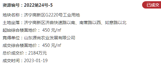 地块五:济宁高新区G2220号工业用地【山东源尚农业发展有限公司竞得】