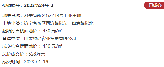 地块二:济宁高新区G2219号工业用地【山东源尚农业发展有限公司竞得】