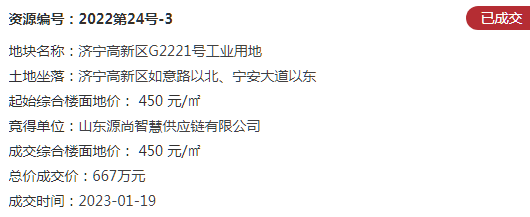 地块三:济宁高新区G2221号工业用地【山东源尚智慧供应链有限公司竞得】