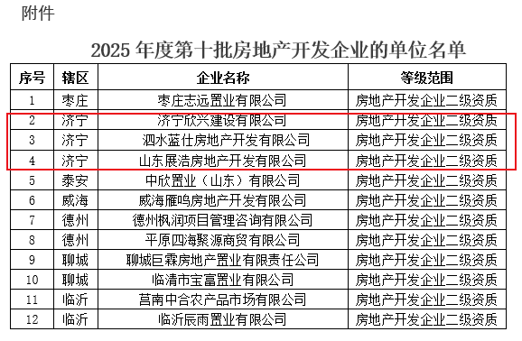 济宁3家!山东省2025年度第十批房地产开发企业资质名单发布
