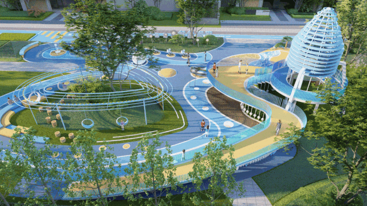 社区内打造全龄运动生活场,分龄儿童空间、健康跑道、下沉式庭院、青年创客空间,老年活动区,每个家庭成员都能在社区中找到属于自己的活动空间。