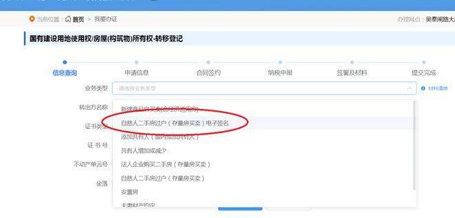 ②转移登记-国有建设用地使用权/房屋(构筑物)所有权转移登记-在线办理