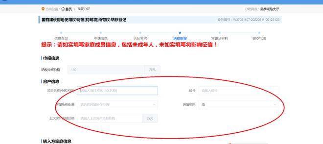 ①房产信息:填写小区名称,楼号,所在街道,上次房产价值