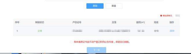 5. 点击申请须知,同意并继续。选择业务类型:自然人二手房过户(存量房买卖)电子签名,查询房产并添加所过户的房产,点击添加,勾选红色字体,点击下一步