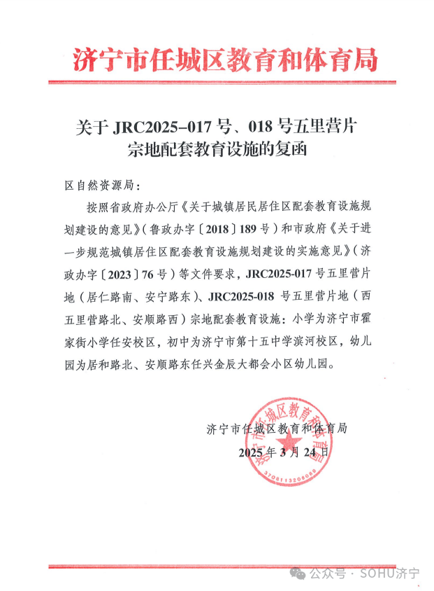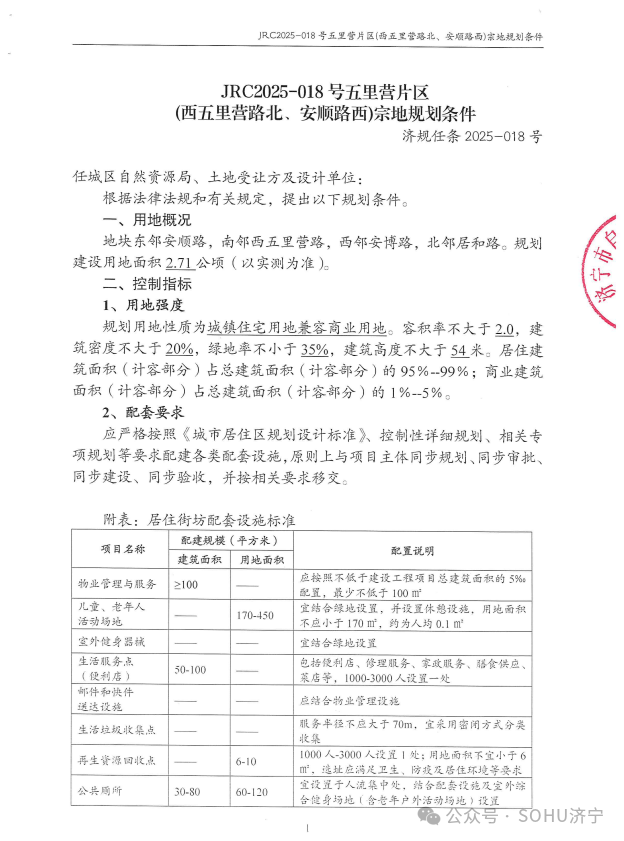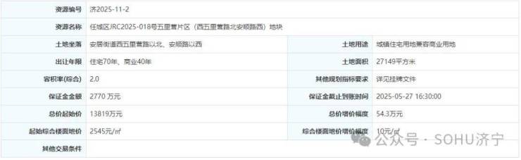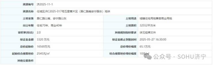 地块一:任城区JRC2025-017号五里营片区(居仁路南安宁路东)地块【济宁云拓置业有限公司竞得】