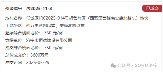 地块三:任城区JRC2025-014号胡营片区(西五里营路南安康北路东)地块【济宁市恒德建设有限公司竞得】