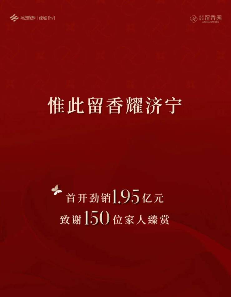 再创绿城传奇!济宁运河绿城·留香园首开劲销1.95亿元