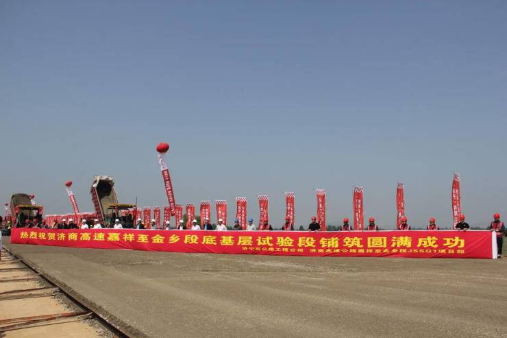 拉开路面施工序幕!济商高速项目水稳基层试验段顺利摊铺