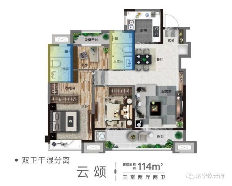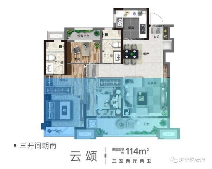 房子行不行,关键看户型。玖云府建面约114㎡云颂户型,突破尺度营造,大面宽、短进深、高通透,格局方正,户户带套房主卧,双开间阔尺阳台……堪称领衔济宁的进阶户型,引发了众多置业者的热询。