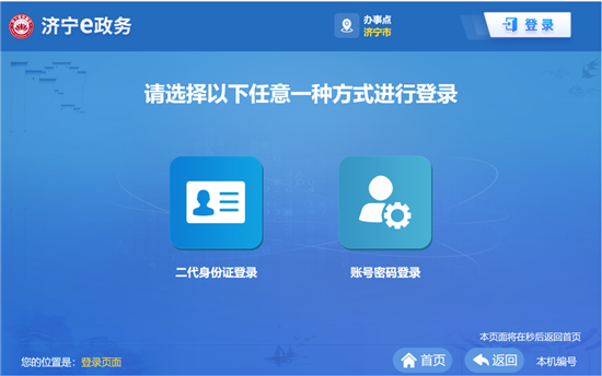 刷身份证或使用手机号码登录自助服务一体机,默认密码六个数字1(手机号码必须先在山东政务服务网注册)。