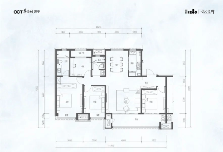 横向餐客厅的设计,相当大气;主客双卫干湿分离,非常实用。就算是三代同住,也不会显得局促。北向还预留一个房间,根据不同的居住需求,可以改造成茶室、工作室等;二胎家庭,则可改造成儿童房或小书房。