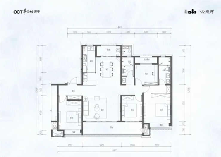 预算多一点的,来看看云水岸建面约143㎡四室两厅两卫户型,可以说是满足了小编居住空间的所有想象!约8.1米超宽阳台,闲暇时可以俯瞰一下洸府河风景,优质的视野效果建议大家来体验一下。