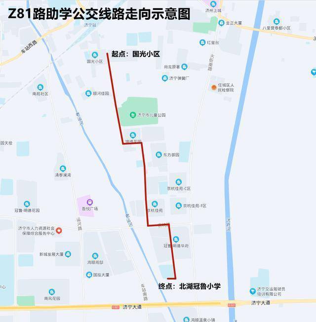Z81路:国光小区—锦绣花园南门—会通路京杭路—北湖冠鲁小学。运营里程4.5公里,日发班次4个,投入车辆1台,运营时间根据学校授课时间动态调整。