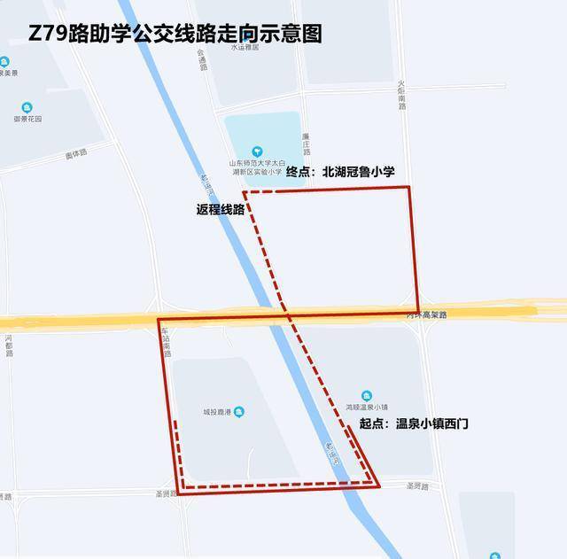 Z79路:温泉小镇西门—城投鹿港南门—城投鹿港西门—北湖冠鲁小学。运营里程3.1公里,日发班次4个,投入车辆1台,运营时间根据学校授课时间动态调整。