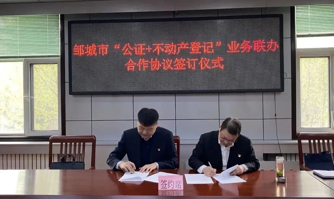 为提升邹城市不动产登记便民化、信息化水平,4月7日,邹城市自然资源和规划局与邹城市公证处举行战略合作签约仪式,推动双方业务的共同开展,实现信息共享、优势互补,打造公证与不动产登记业务“一窗受理、一次办好”服务新模式。