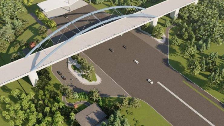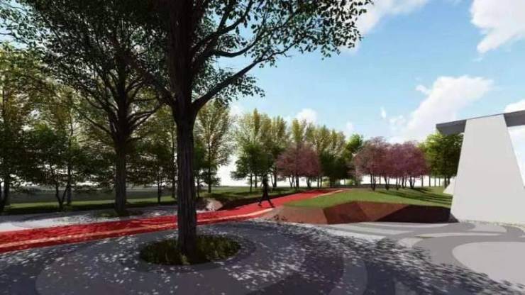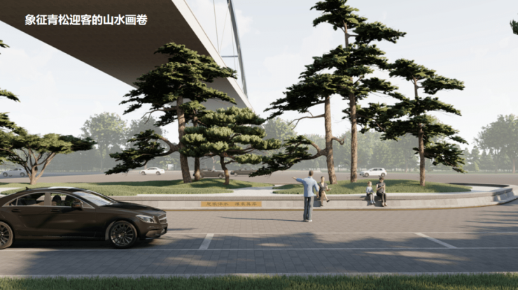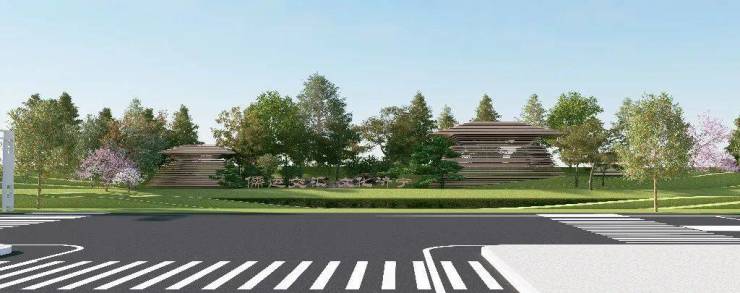 总体设计理念为”礼乐相迎”,营造地形起伏的大地景观,舒朗大气的自然式种植群落。收费站出入口以“泮池”为设计元素设置迎宾空间,以“青松迎客、折柳送别”为植物主题打造景观效果。